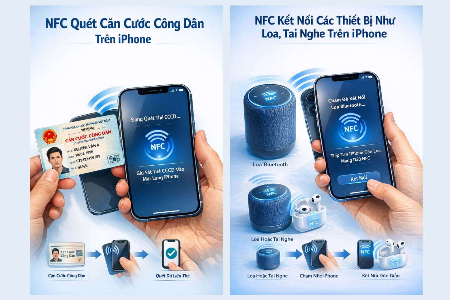 Đây là nhu cầu thiết yếu để xác thực sinh trắc học ngân hàng hoặc định danh mức 2. iPhone sử dụng NFC để đọc trực tiếp thông tin mã hóa nằm trong chip vàng của thẻ CCCD.