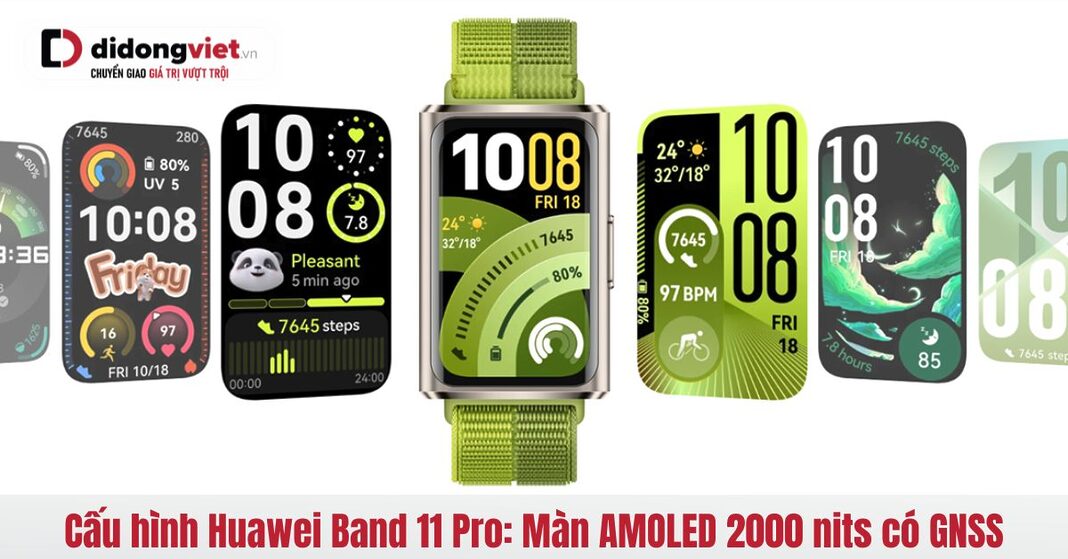 Cấu hình Huawei Band 11 Pro cho thấy nhiều nâng cấp đáng chú ý so với thế hệ trước, nổi bật với màn hình AMOLED 1.62 inch siêu sáng 2000 nits và định vị GNSS độc lập. Thiết bị còn sở hữu pin 300 mAh cho thời lượng sử dụng tối đa đến 14 ngày trong phân khúc fitness band tầm trung.