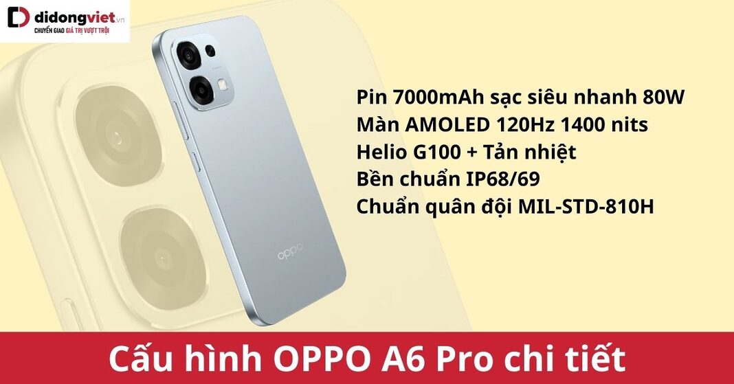 Lưu ý: Giá OPPO A6 Pro có thể thay đổi tùy thời điểm và biến động thị trường. Bạn đọc vui lòng tham khảo tại trang chủ didongviet.vn để tham khảo giá bán mới nhất.