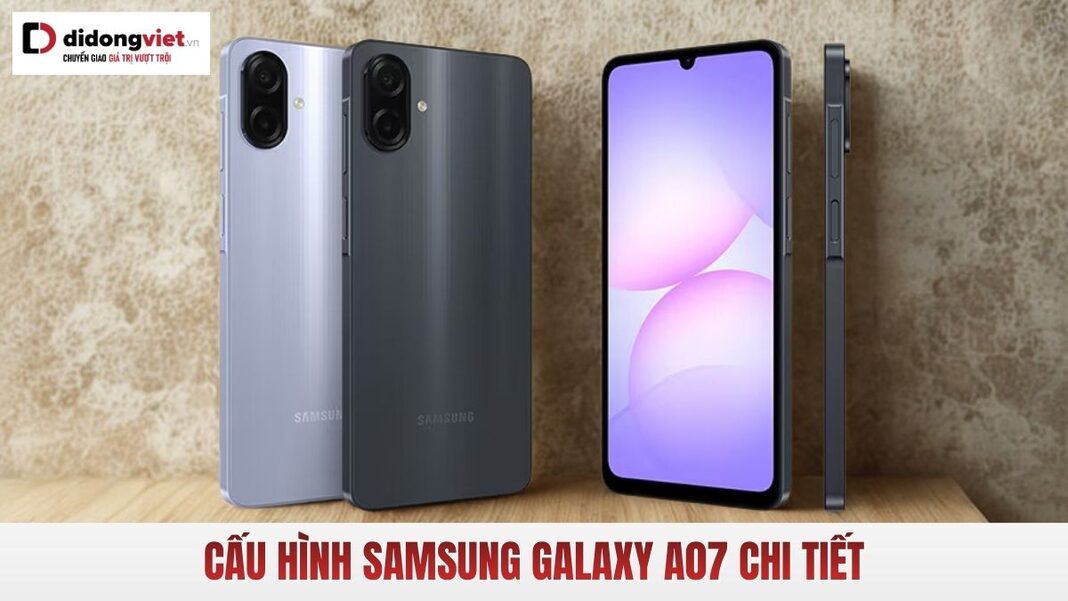 Bên cạnh thiết kế và hiệu năng, Galaxy A07 còn sở hữu nhiều thông số cấu hình đáng chú ý, đáp ứng tốt nhu cầu sử dụng hằng ngày của người dùng: