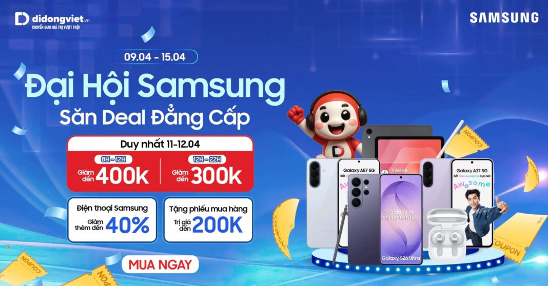 Nếu bạn đang tìm kiếm một chiếc điện thoại hoặc tablet Samsung mới với sự an tâm tuyệt đối và mức giá tối ưu, Đại hội Samsung – Săn deal đẳng cấp tại Di Động Việt chính là chương trình không thể bỏ qua trong tháng 4 này. Chương trình không chỉ mang đến những ưu đãi ấn tượng mỗi ngày mà còn là dịp để khách hàng trải nghiệm những giá trị dịch vụ khác biệt và đẳng cấp.