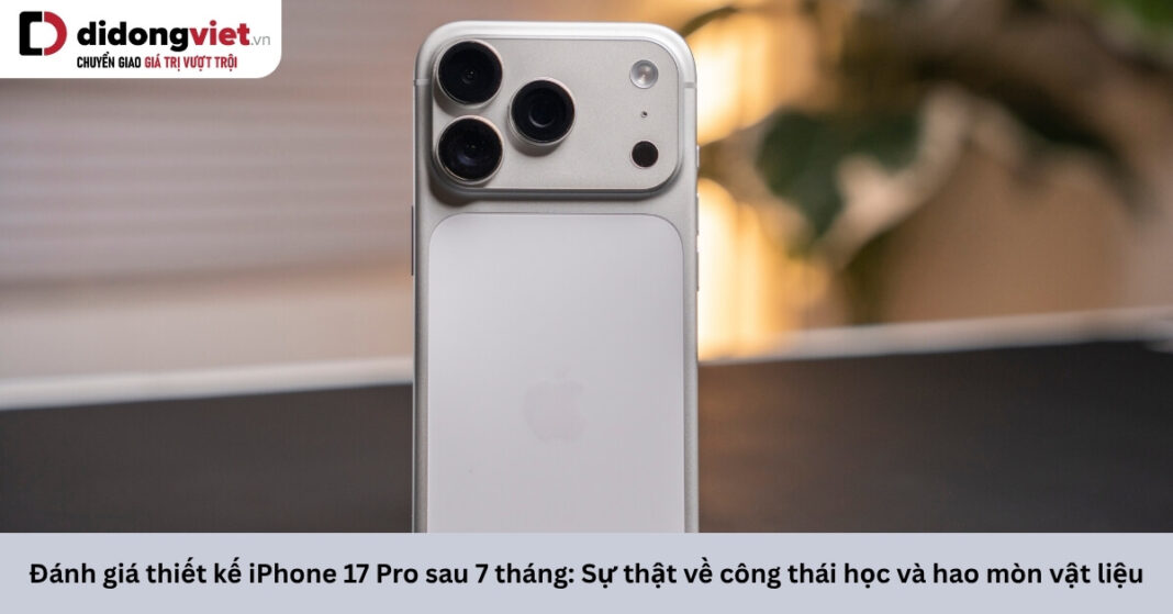 iPhone 17 Pro đặc biệt với việc áp dụng thiết kế “unibody” từ khung nhôm rèn chịu nhiệt, cùng với cụm camera Plateau mới lớn hơn, màn hình 6.3 inch sáng lên đến 3.000 nits và camera trước Center Stage 18MP. Thiết bị không chỉ mang đến vẻ ngoài hiện đại và bền bỉ mà còn tạo cảm giác cầm nắm chắc chắn, mặc dù có kích thước dày hơn (8.75mm) và nặng hơn (204g) so với thế hệ trước. Để khám phá chi tiết hơn, cùng đánh giá thiết kế iPhone 17 Pro chi tiết sau 7 tháng sử dụng.