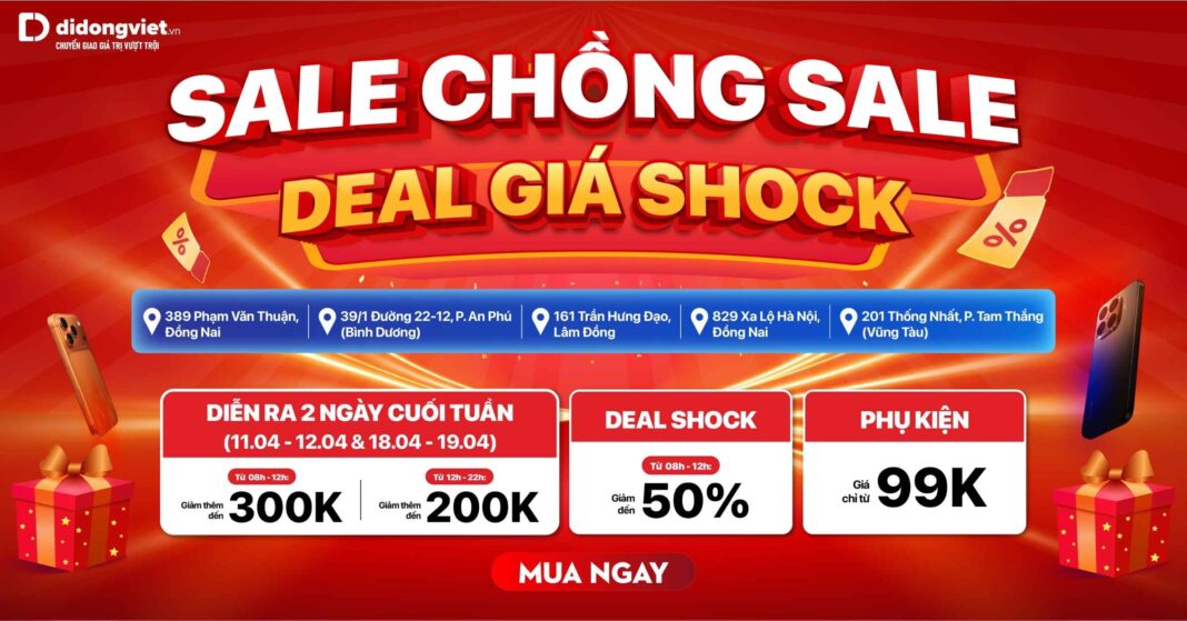 Trong hành trình mang đến những trải nghiệm tốt nhất cho người dùng, Di Động Việt tiếp tục triển khai chương trình SALE CHỒNG SALE – DEAL GIÁ SHOCK. Đây không chỉ là cơ hội để sở hữu những thiết bị công nghệ tiên tiến mà còn là dịp để khách hàng cảm nhận sâu sắc giá trị dịch vụ khác biệt mà chúng tôi theo đuổi.