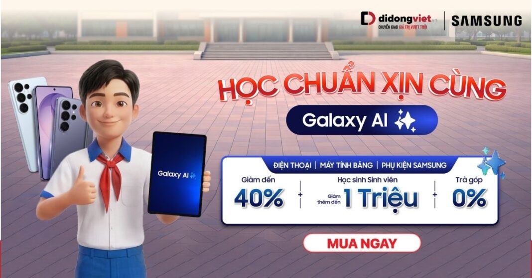 Thấu hiểu nhu cầu đó, Di Động Việt tự hào đồng hành cùng Samsung mang đến chương trình siêu khuyến mãi độc quyền: “Học Chuẩn Xịn Cùng Galaxy AI“.