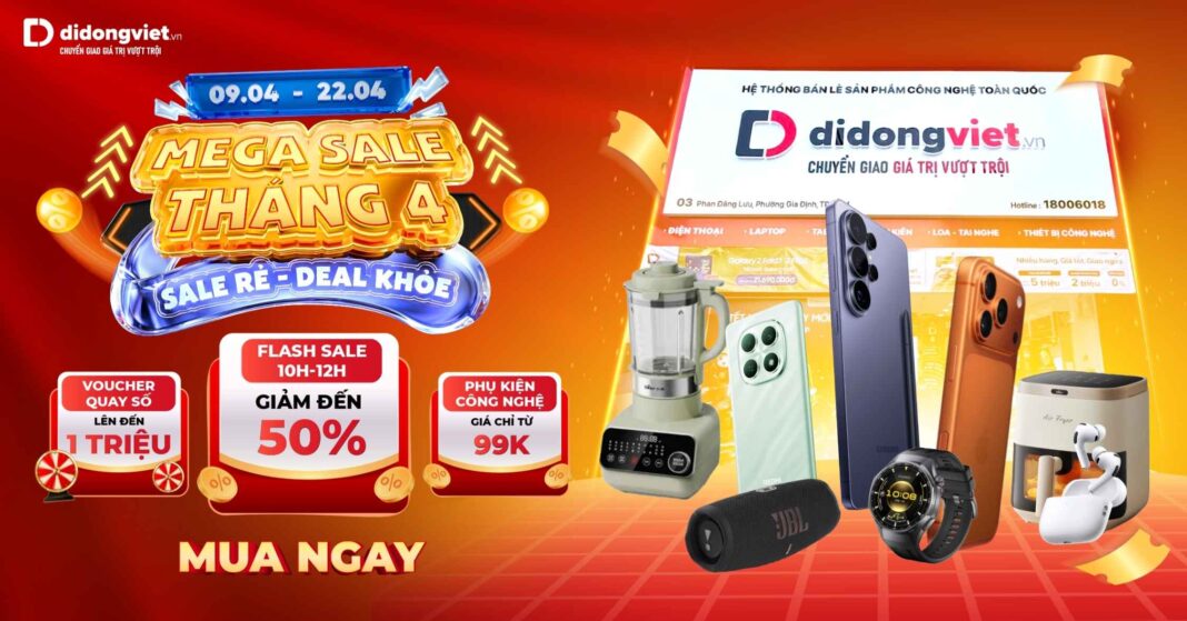 Tháng 4 này, hệ thống Di Động Việt chính thức khởi động chương trình mua sắm lớn nhất mùa hè với thông điệp “Sale Rẻ – Deal Khỏe”. Đây là cơ hội để khách hàng sở hữu các thiết bị công nghệ hàng đầu với mức giá tối ưu cùng nhiều đặc quyền hấp dẫn.
