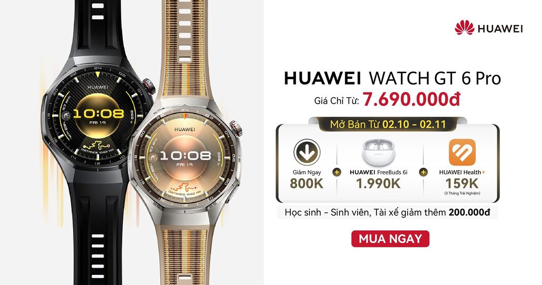 Ngày 02.10 vừa qua, HUAWEI chính thức cho ra mắt HUAWEI Watch GT 6 Series tại thị trường Việt Nam. Đây là thế hệ kế nhiệm của dòng Watch GT quen thuộc, mang đến nhiều nâng cấp đáng chú ý cùng tính năng chuyên sâu vốn chỉ xuất hiện trên các dòng đồng hồ cao cấp. Tại Di Động Việt, khách hàng còn nhận được cơ hội trải nghiệm trực tiếp sản phẩm và nhận ưu đãi vô cùng hấp dẫn.