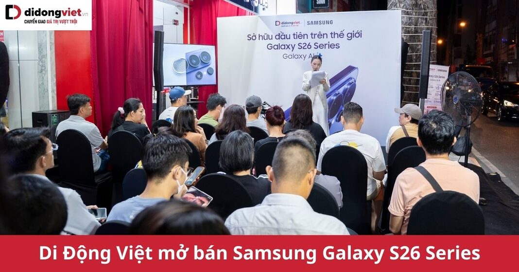 Sự kiện mở bán Samsung Galaxy S26 Series tại Di Động Việt đang được fan công nghệ háo hức mong chờ. S26 series năm nay không chỉ mang đến những nâng cấp đột phá về trí tuệ nhân tạo Galaxy AI, hệ thống camera chuyên nghiệp cùng hiệu năng vượt trội, thế hệ flagship mới nhất của Samsung còn khiến người dùng đứng ngồi không yên bởi các chương trình khuyến mãi khổng lồ.