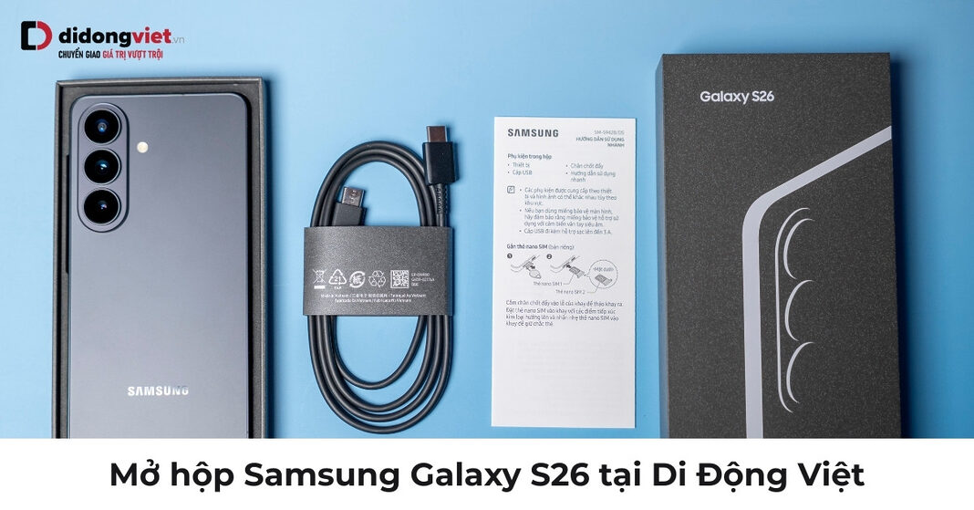 Ngay lúc này, mức giá của dòng Galaxy S26 tại Di Động Việt đã được công bố đi kèm chương trình đặt trước cực “hời” từ ngày 26/02 đến 05/03: