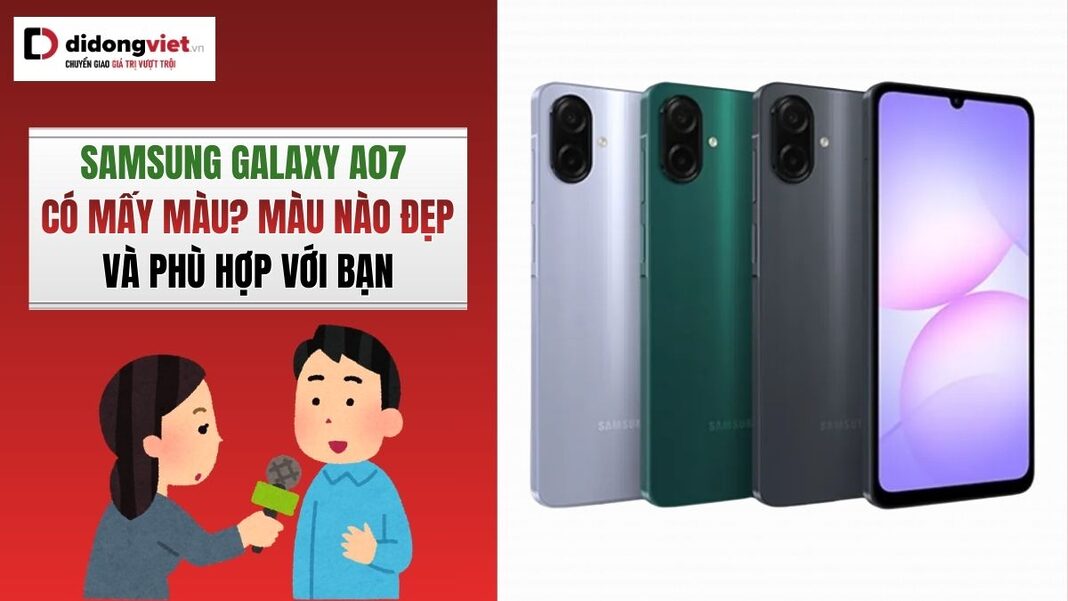Samsung Galaxy A07 ra mắt với 3 màu sắc gồm xanh lục bảo, tím bạc và đen huyền bí, mỗi phiên bản đều phù hợp với một phong cách và cá tính riêng. So với Galaxy A06, bảng màu A07 được Samsung làm mới rõ rệt về tông màu và hoàn thiện. Trong bài viết này, Dchannel sẽ giúp bạn tìm hiểu chi tiết số lượng màu, ưu nhược điểm từng phiên bản, so sánh với A06 và gợi ý lựa chọn màu Galaxy A07 phù hợp nhất.