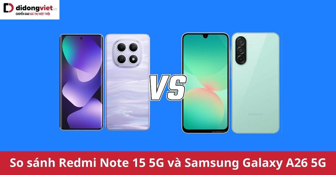 Bảng so sánh Redmi Note 15 5G và Samsung Galaxy A26 5G