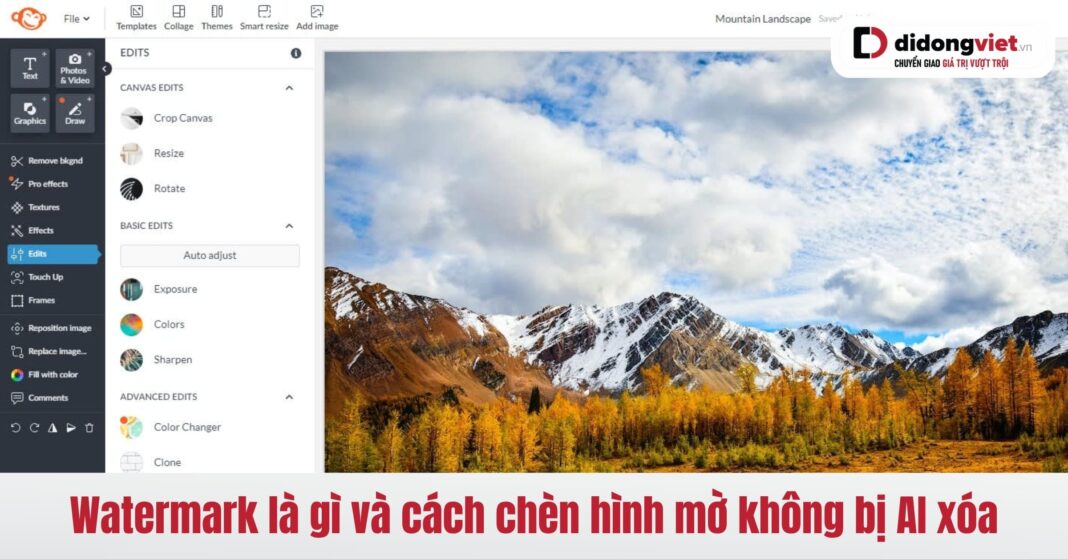 - Tư duy chèn tinh tế: Sử dụng hệ thống Grid (lưới), đặt hình mờ ở điểm giao cắt của quy tắc 1/3, đè lên các vùng chi tiết phức tạp của phông nền để công cụ AI khó tái tạo lại bề mặt.
