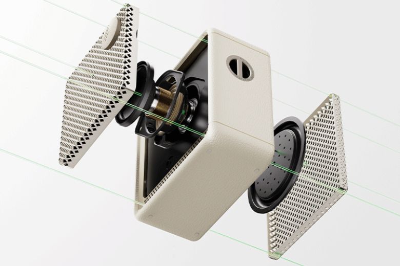 Edifier ES20 sở hữu thiết kế vuông vức với kích thước 90.4 x 93.7 x 49.7 mm, mang đến cảm giác chắc chắn và mạnh mẽ. Mặt loa được bảo vệ bởi khung kim loại cao cấp, không chỉ tăng độ bền mà còn tạo nên vẻ ngoài sang trọng, đẳng cấp. Bên cạnh đó, khung viền silicon mềm mại bao quanh loa giúp tổng thể trở nên trẻ trung, năng động hơn, phù hợp với nhiều phong cách sử dụng.
