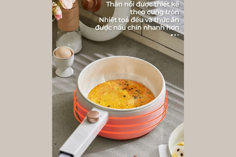 Ngoài ra, nồi được trang bị hai mức nhiệt độ tùy chỉnh linh hoạt, phù hợp với từng kiểu món ăn khác nhau. Ở mức nhiệt thấp, người dùng có thể nhẹ nhàng ninh xương, hầm rau củ hoặc hâm nóng món ăn mà không lo sôi trào.