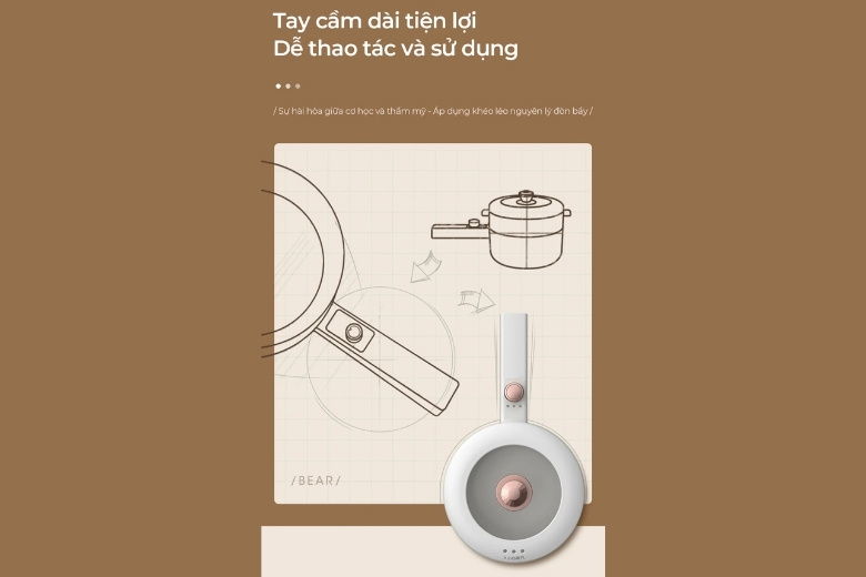 Thiết kế này không chỉ mang lại sự thoải mái cho người sử dụng mà còn giảm thiểu nguy cơ bị bỏng do tiếp xúc gần với thân nồi nóng, một điểm cộng đáng kể trong các không gian bếp nhỏ hoặc khi nấu ăn cùng trẻ nhỏ.